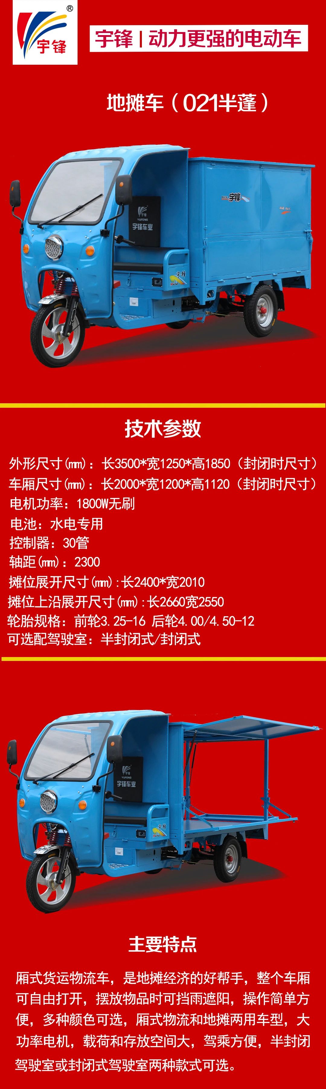 宇鋒半蓬三輪車,分為三大類別: 常規系列、快遞系列、環衛系列。