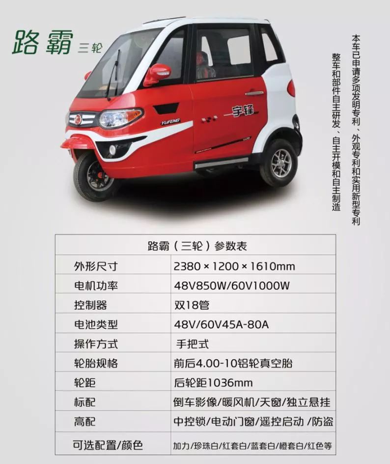 宇鋒新能源----鴻悅,多種顏色搭配,轎車級烤漆,渾然大氣,澎湃動力,舍我其誰?